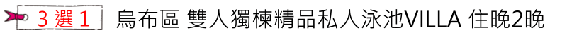 烏布區雙人獨楝泳池別墅(3選1,需連續住宿2晚)。