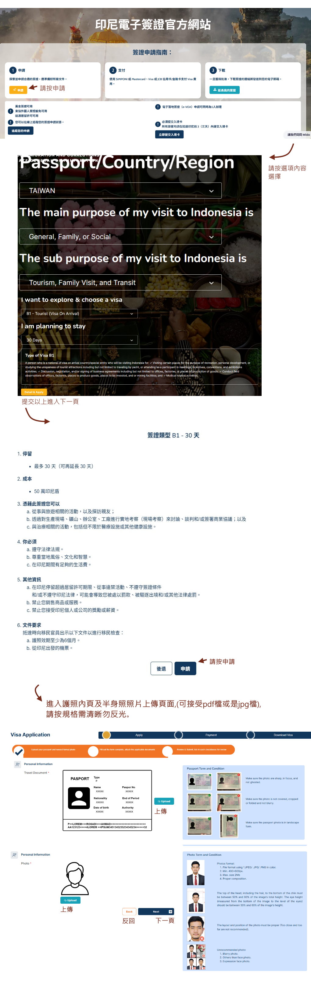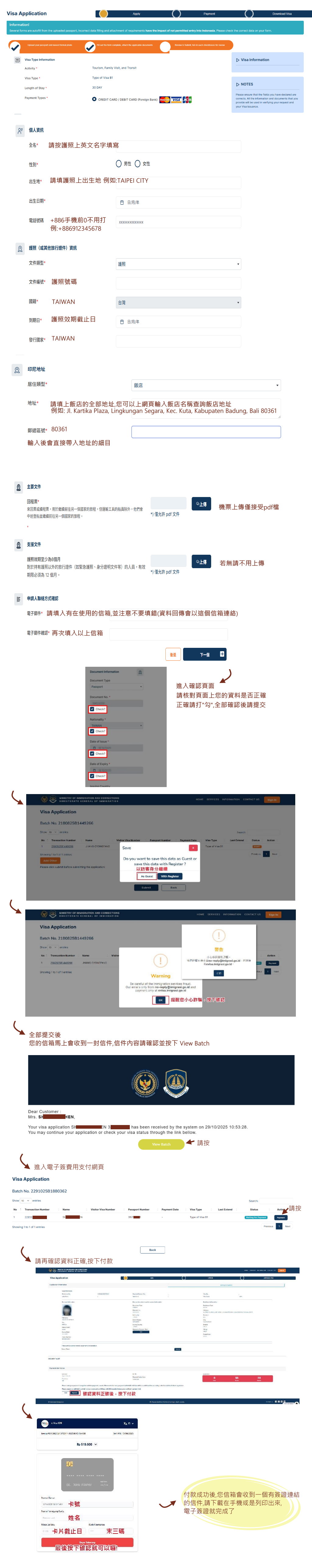 請進入印尼官方網站辦理電子簽證https://evisa.imigrasi.go.id/